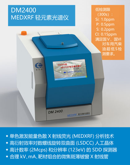 完全依據(jù)ASTM D 7220-12的DM2400S/Cl型MEDXRF微量測硫氯儀采用單色激發(fā)技術,能快速、準確、精確地分析燃料中的超低S。是實驗室和工廠進行燃料中的超低S分析的完美 ...更多